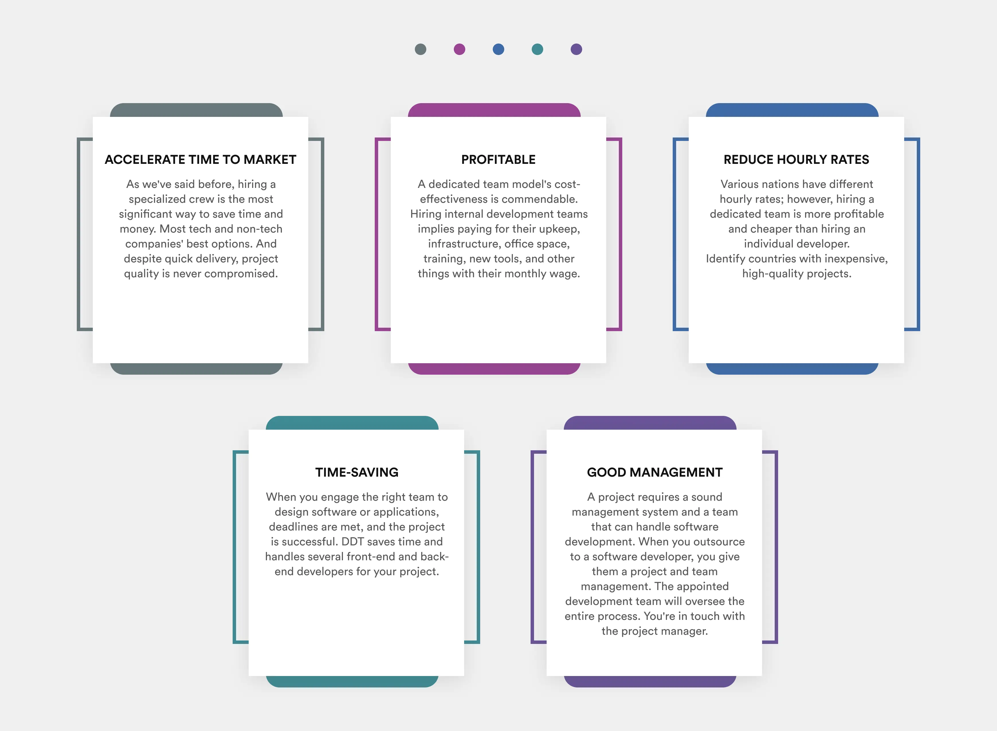 A dedicated team model's cost-effectiveness is commendable. Hiring internal development teams implies paying for their upkeep, infrastructure, office space, training, new tools, and other things with their monthly wage.