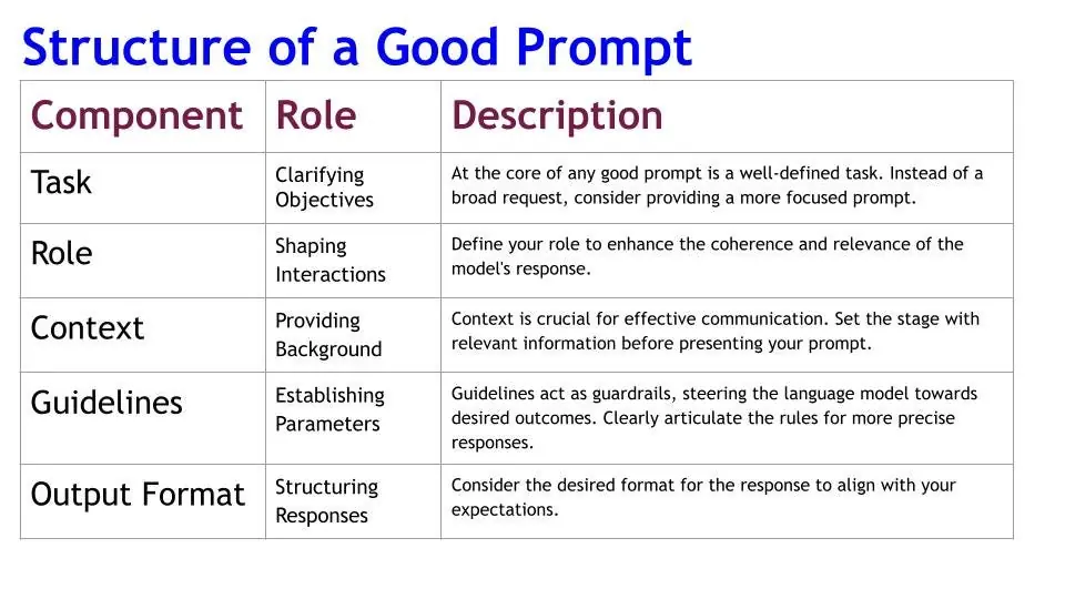 After describing what you're looking for, try incorporating phrases like "Present this in the form of…" followed by your preferred output format. Alternatively, start your prompt with "Create a [format of output] about / that contains…" This approach provides the AI with a clear image of the final product you're envisioning, leading to more accurate and satisfactory results.