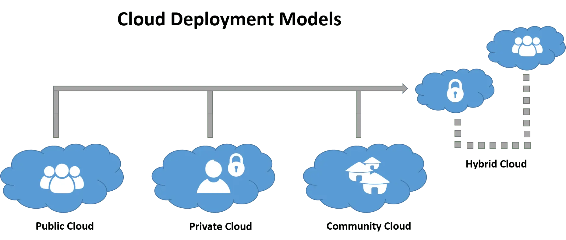 There are four major cloud computing models. They include Private Cloud, Public Cloud, Hybrid Cloud, and Multi-Cloud.